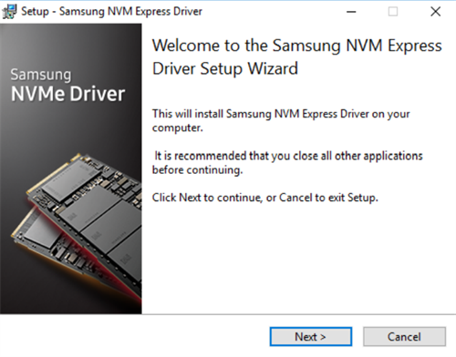 3、Samsung NVMe驱动程序安装向导当弹出以下屏幕时,单击下一步继续安装。