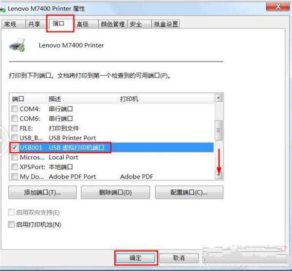 端口错了是打不了的,很多用户都是这里错了,用USB线连的这里却勾选的却是LPT端口。如果是这里错了只要改成相应的就行了,修改方法很简单,按住右边的滚动条往下拉