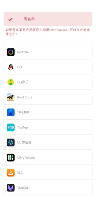 5、如果想要在某些应用程序中禁用Ultra Volume,可以在此处选择他们。
