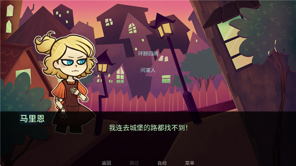 4、采用手绘卡通风格,搭配深棕、墨绿等色调,营造出扭曲城堡的诡异氛围。