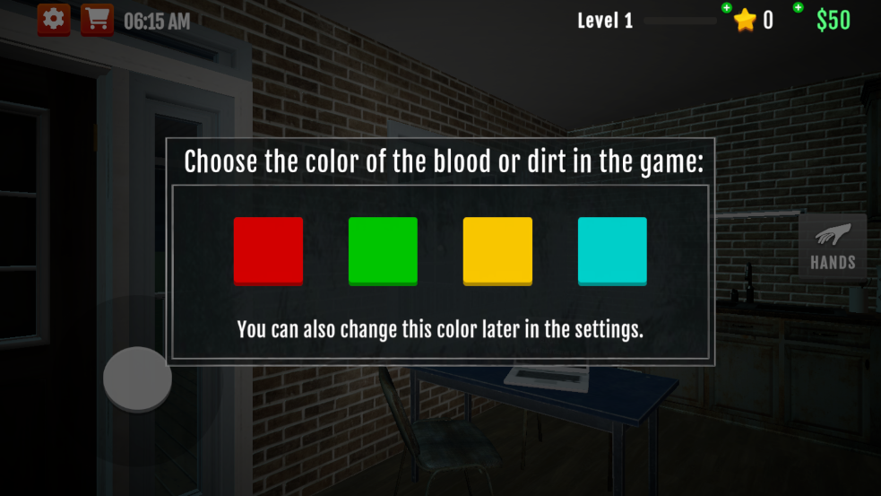 1、刚进入游戏时会让你选择血迹的颜色,有红色、绿色、黄色和蓝色可以选择,这里我选择的是绿色。