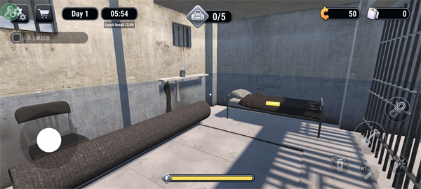 小心狱警的检查——盖好地毯,把挖出的沙子倒进马桶,千万别被发现。获取食物、更好的鞋子和更大的铲子。锻炼身体以增强力量和精力,购买更好的背包,从地下挖出更有价值的物品。