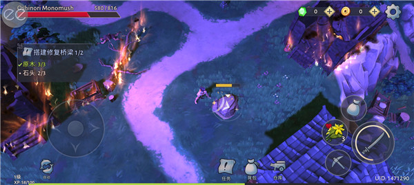 9、之后玩家根据指引,收集木头和石头即可修复桥梁。