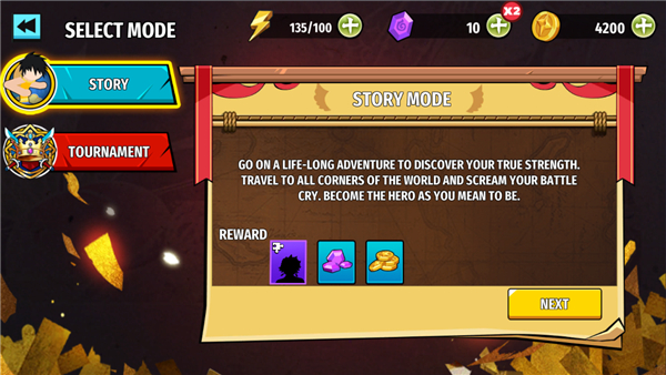3、点击右下角里面有一个剧情章节以及锦标赛玩法,可根据自己需求体验;