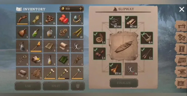 造船虽然简单。与您家乡岛上避难所旁边的破船互动,并列出修复它所需的物品。收集材料并将它们拖到它们的插槽以重建您的船。