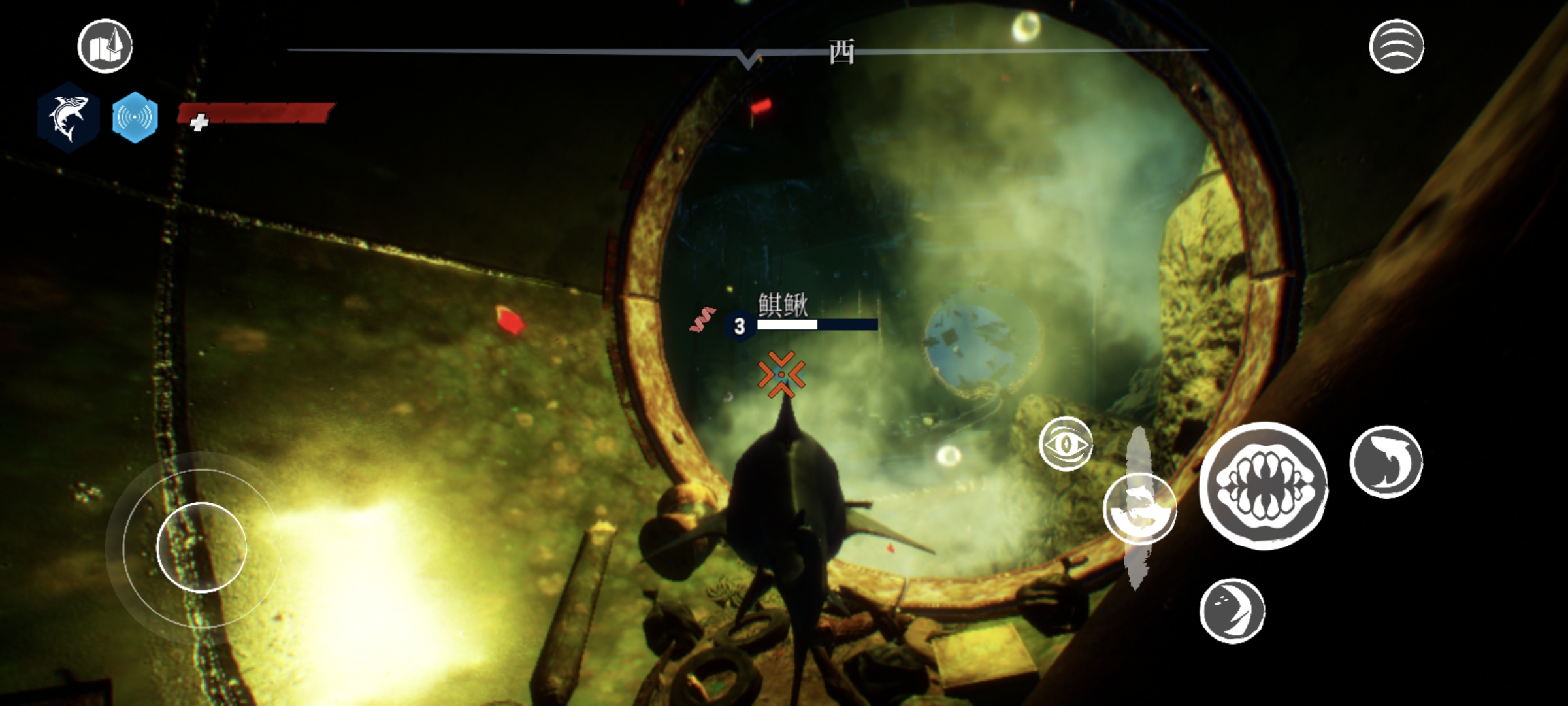 3、通过摇杆即可控制食人鲨的移动方向,不过感觉移动端的适配优化不是很好,操作不是很丝滑,有些生硬。