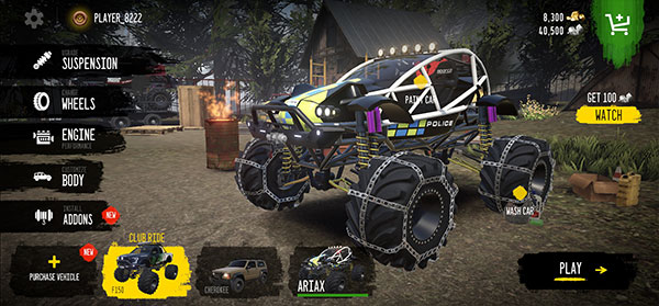 3、自定义去打造自己的越野卡车,不断的强化升级卡车,让自己轻松的去完成越野挑战。