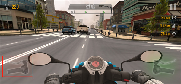 7、通过按住游戏左下角的红色部分来进行刹车;