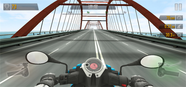游戏中玩家可以点击下一步进行游戏游玩,根据需求选择模式和关卡进行游玩,游戏中玩家需要左右倾斜手机来控制方向,通过按住右下角绿色的部分来进行加速,按住游戏左下角的红色部分来进行刹车。城市摩托驾驶游戏内当玩家速度高于100玩家通过超越其他车辆可以获得额外的时间和分数,游戏右边还有一个倒计时,倒计时玩家还没有到达终点游戏就闯关失败,当玩家到达终点后,游戏会根据玩家游玩情况来发放奖励。还在等什么,有兴趣的玩家快来下载城市摩托驾驶游戏进行闯关吧!