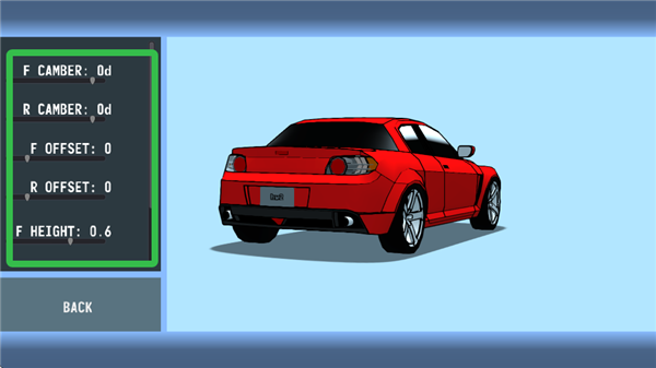 4、滑动滑块即可调整轮胎外倾角、偏移量以及车身高度。