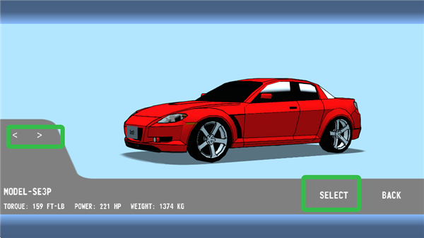 2、按<、>图标选择需要调整的车辆,选择好后点击【SELECT】。