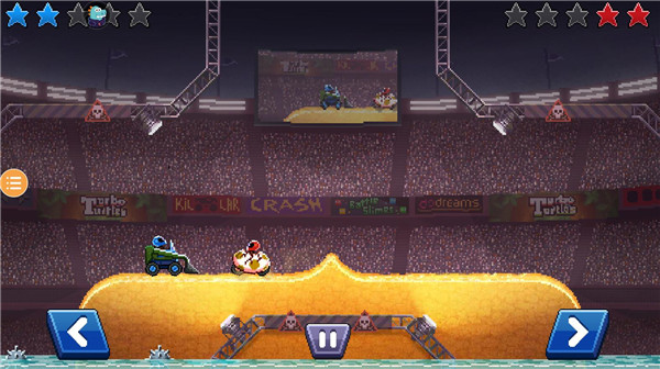 游戏操作非常简单,只需要左右滑动屏幕控制车辆的前进和后退,以及平衡和翻转即可。撞头赛车游戏中还有各种不同的赛道和场景,每个都有不同的特点和难度,有些赛道会有各种机关和障碍物,比如弹簧、火箭、电锯等,给玩家带来更多的惊喜和刺激体验,感兴趣的玩家可以前来下载游玩!