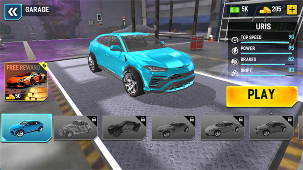 3、选择驾驶的车辆,点击屏幕右侧的“PLAY”开始游戏。