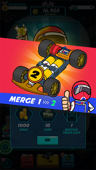 迷你四驱进化手游是一款十分休闲好玩的放置类赛车合成游戏。该游戏画风简约卡通,玩法简单易操作,在这里玩家将通过合成的方式,将两两相同等级的赛车进行不断的合并升级来获得更高等级的车辆。并使用金币对赛车进行零件强化,提高赛车的它们的性能、力量、漂移和抓地力等,让你在能够在各式各样的赛道中极速驰骋,展现自己独一无二的驾驶技术,同时你也可以加入更多不同的赛车战队中参与各种赛事,探索超多不同赛道,与他们一起角逐世界大奖。