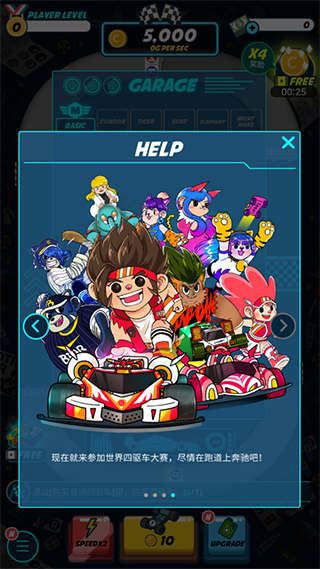 4、提供有多达数十种不同的四驱赛车,每一辆都会配备相应的伙伴