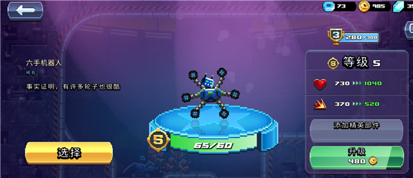 1、需要选择一辆车,推荐六手机器人、触手车、双面车、贝壳等车。